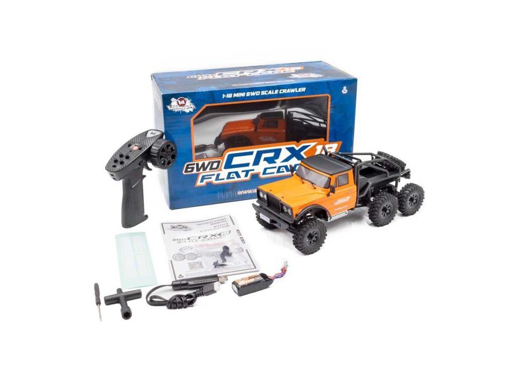 Obsah balení: CRX18 6x6, Vysílač, Baterie LiPo 600mAh 2S, USB nabíječka