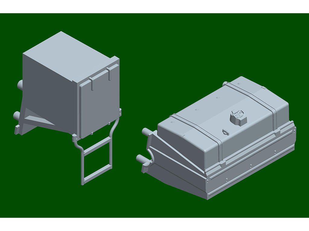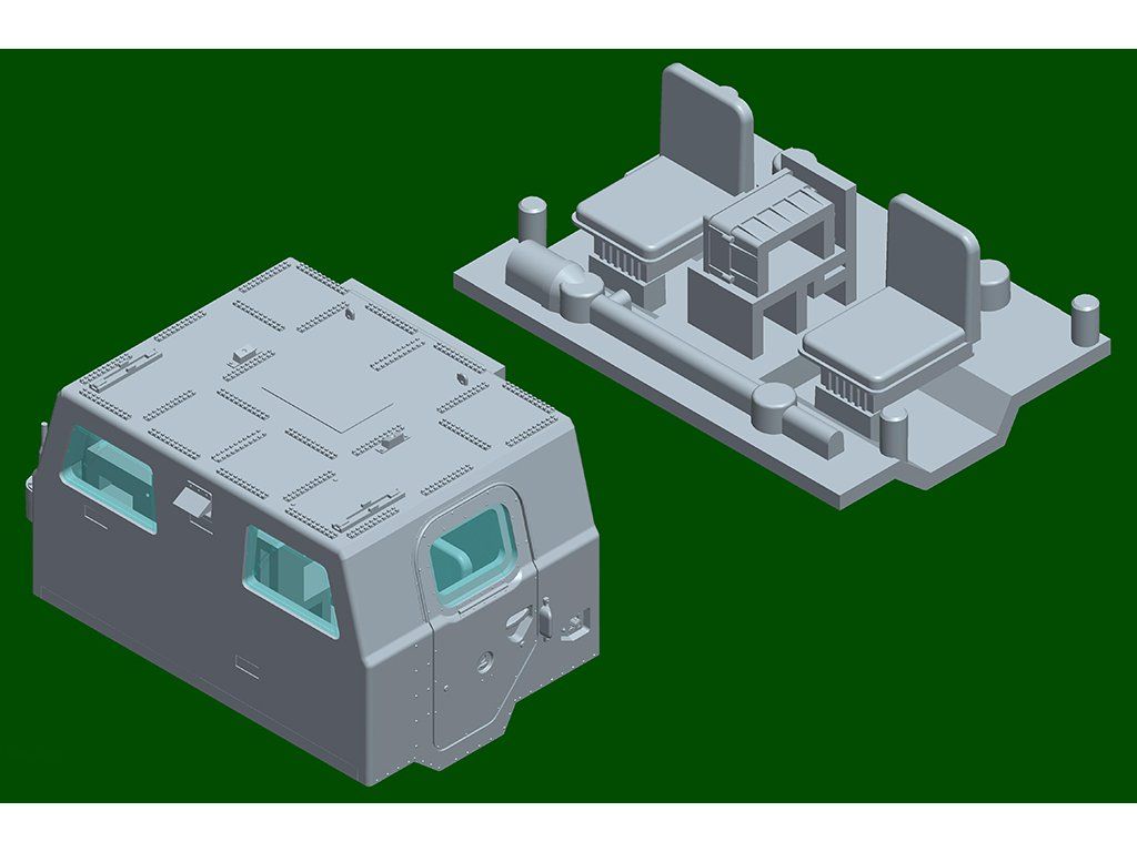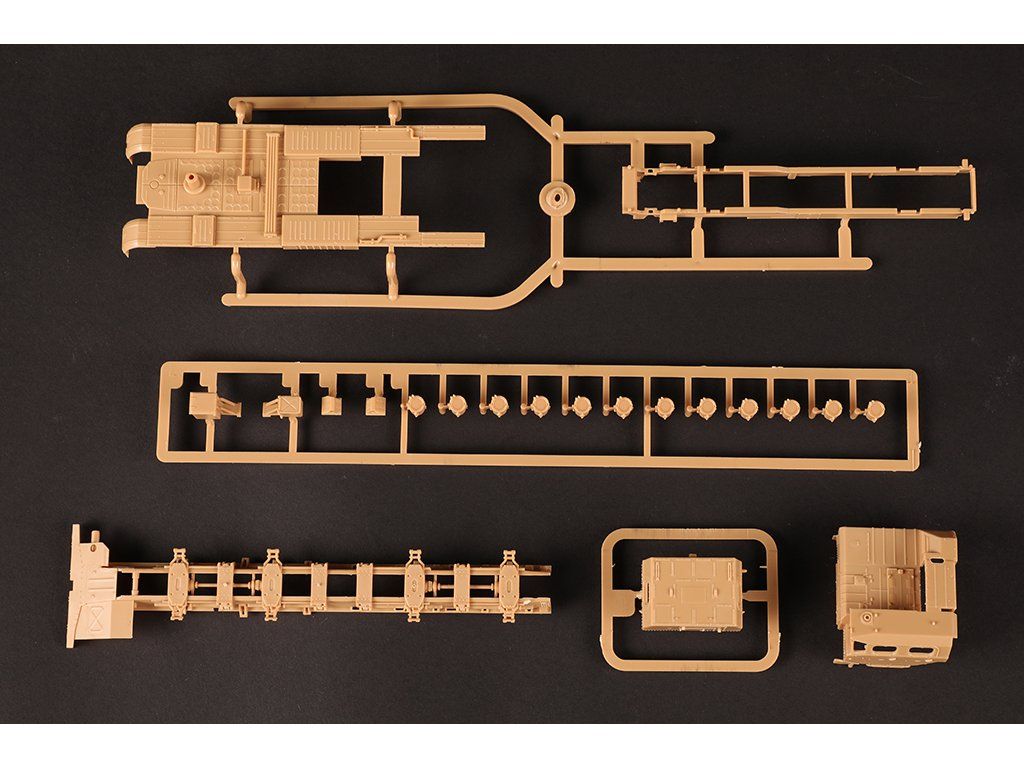 Stavebnica plastového modelu sovietskeho viacnásobného odpaľovača rakiet z obdobia 80. rokov minulého storočia.