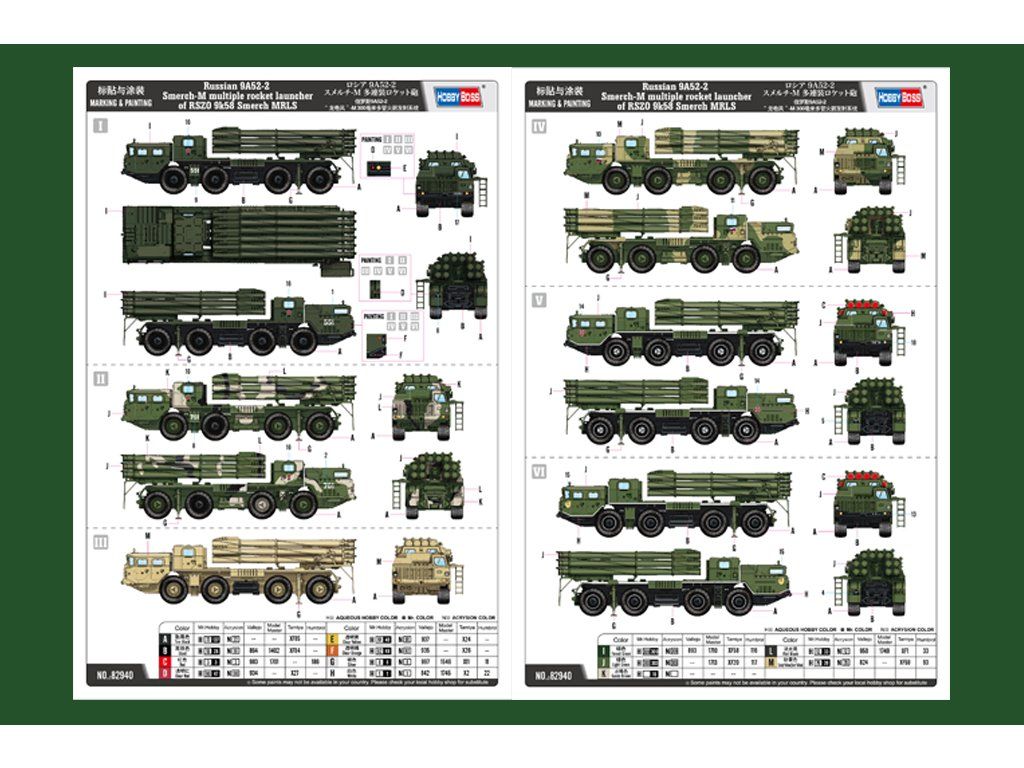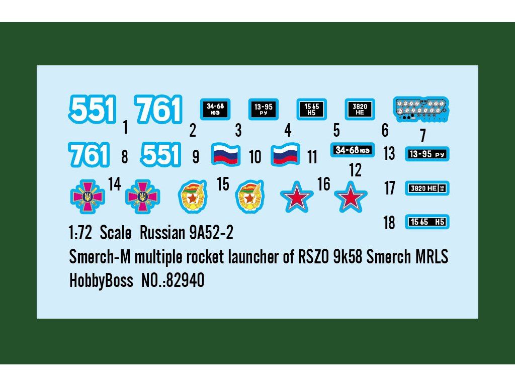 Russian 9A52-2 Smerch-M multiple rocket launcher of RSZO 9k58 Smerch MRLS 1/72 Trumpeter 82940
