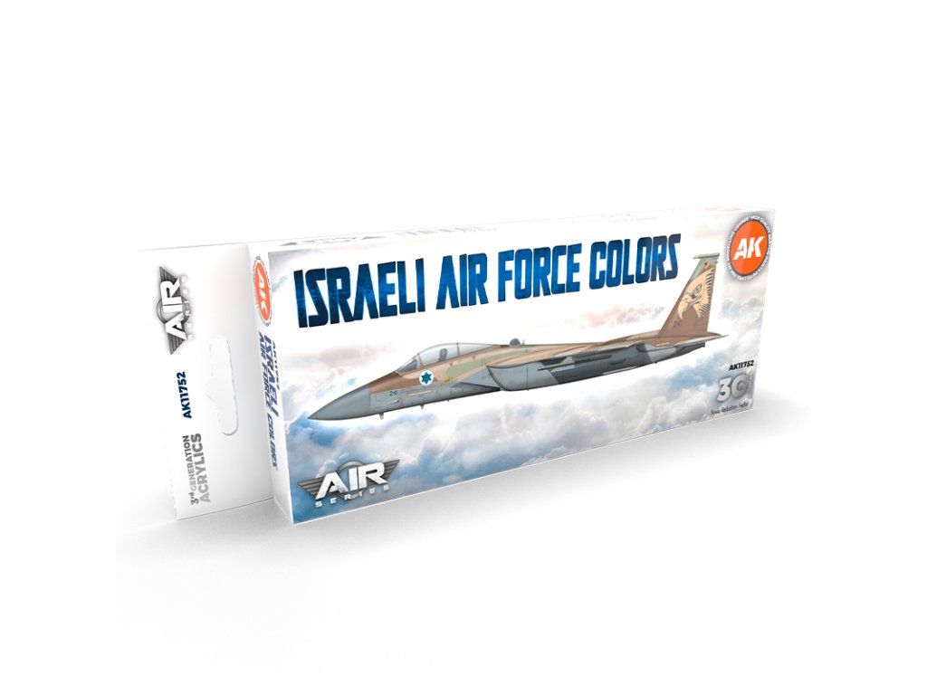 Sada akrylových barev AK-Interactive 3. generace vhodných pro stříkání airbrushem nebo malování štětcem. Sada je vhodná k namalování ale nastříkání letadel používaných izraelskými vzdušnými silami od konce 60. let 20. století.