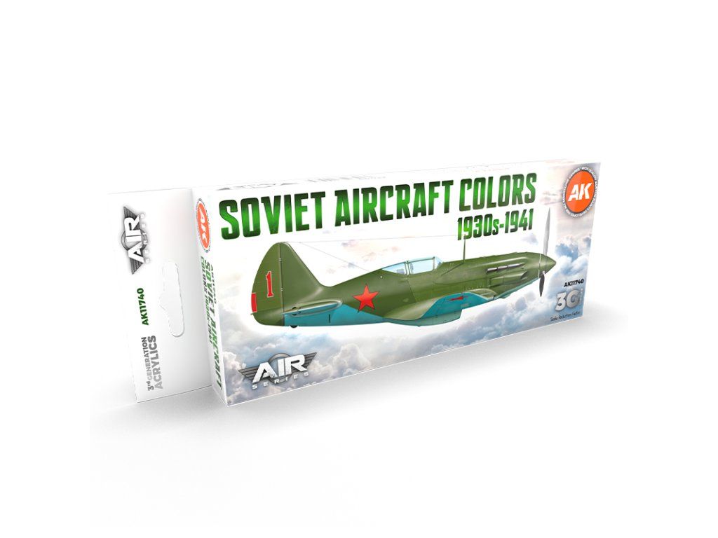Sada akrylových barev AK-Interactive 3. generace vhodných pro stříkání airbrushem nebo malování štětcem. Sada je vhodná k namalování ale nastříkání sovětských letadel od roku 1930 až po rok 1941.