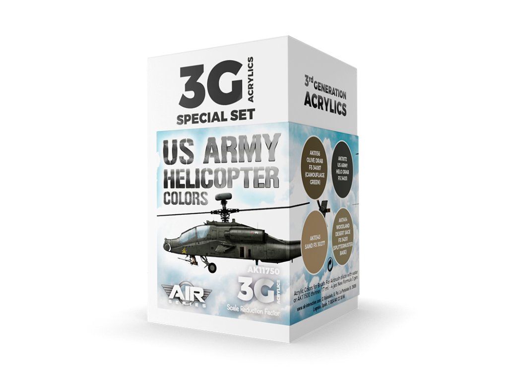 Sada akrylových barev AK Interactive 3GEN - US Army Helicopter Colors