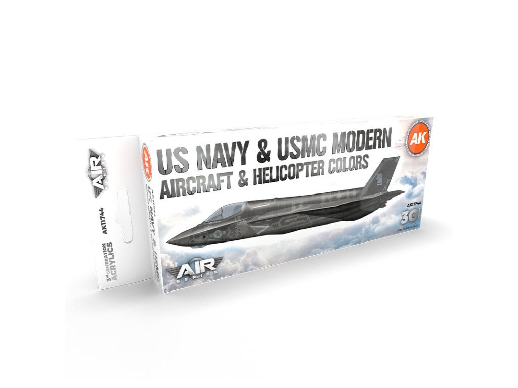 Sada akrylových barev AK-Interactive 3. generace vhodných pro stříkání airbrushem nebo malování štětcem. Sada je vhodná k namalování ale nastříkání letadel a helikoptér ve službách US Navy a Marine Corps od roku 1980.