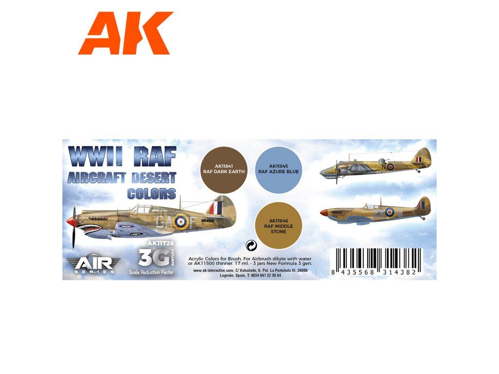 Sada akrylových barev AK-Interactive 3. generace vhodných pro stříkání airbrushem nebo malování štětcem. Sada je vhodná k namalování ale nastříkání britských letadel z druhé světové války.