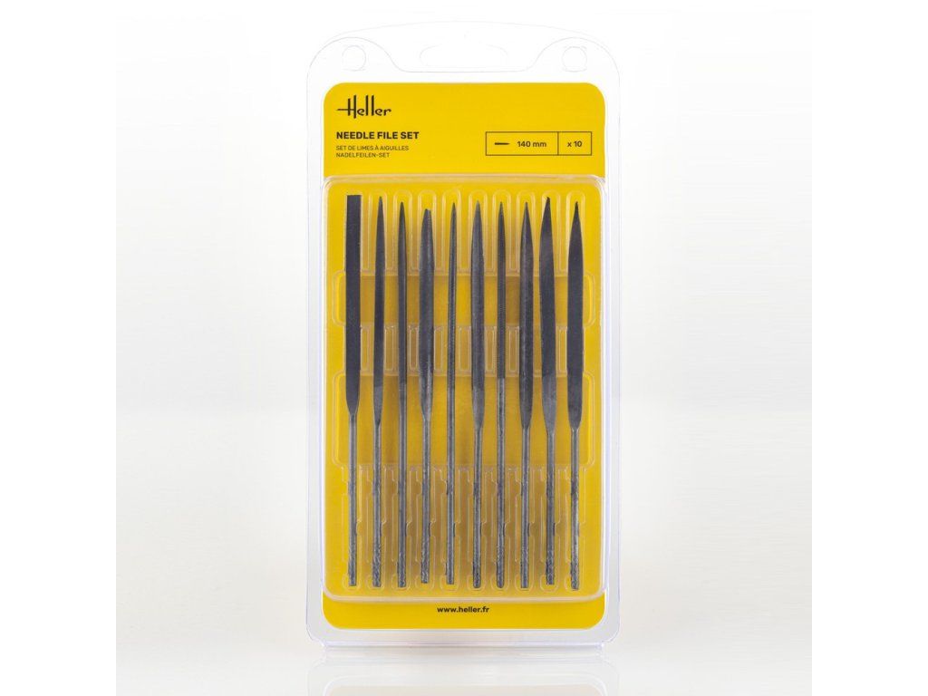 Sada jehlových pilníků s různými tvary průřezů určených k broušení plastů, kovů, dřeva nebo jiných materiálů.
