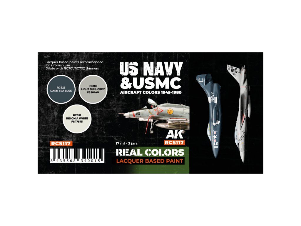 Sada lacquerových barev AK Interactive Real Colors - US Navy & USMC Aircraft 1945-1980
