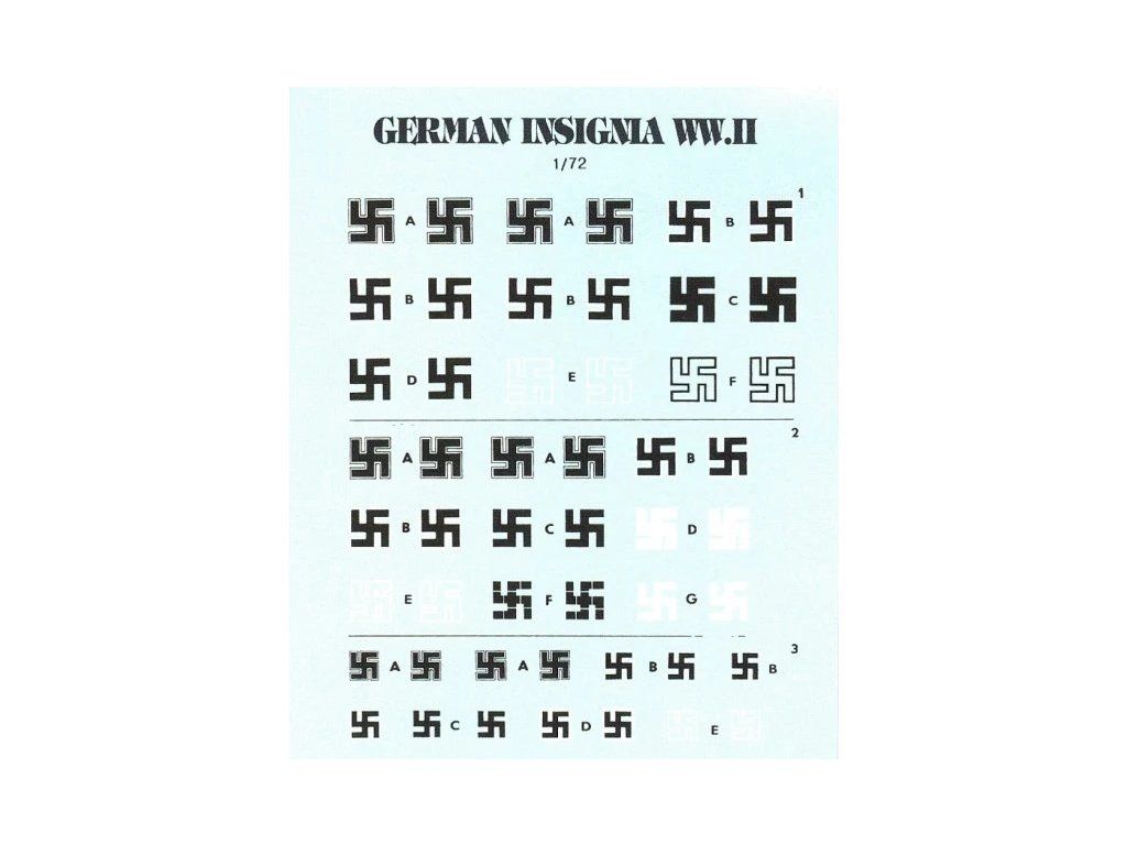Sada dekálů svastík určených pro plastové modely německé techniky z období druhé světové války v měřítku 1/72.