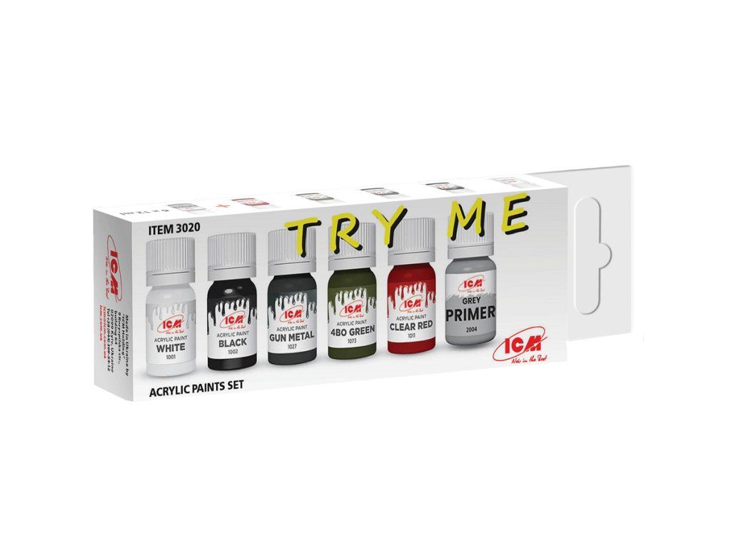 Sada 6 modelářských akrylových barev značky ICM určená pro nabarvení nebo nastříkání modelů nebo figurek.