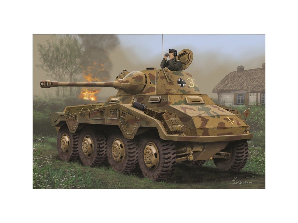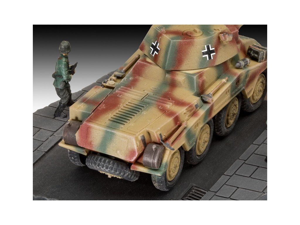 Stavebnica plastového modelu nemeckého kolesového obrneného vozidla z obdobia 2. svetovej vojny.