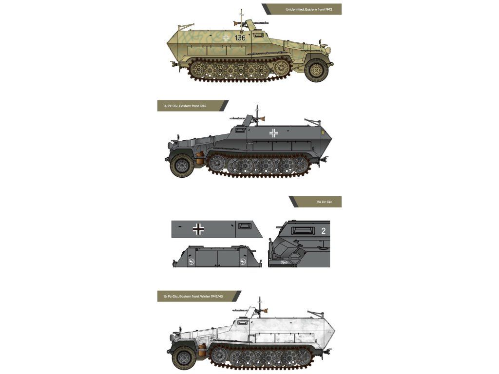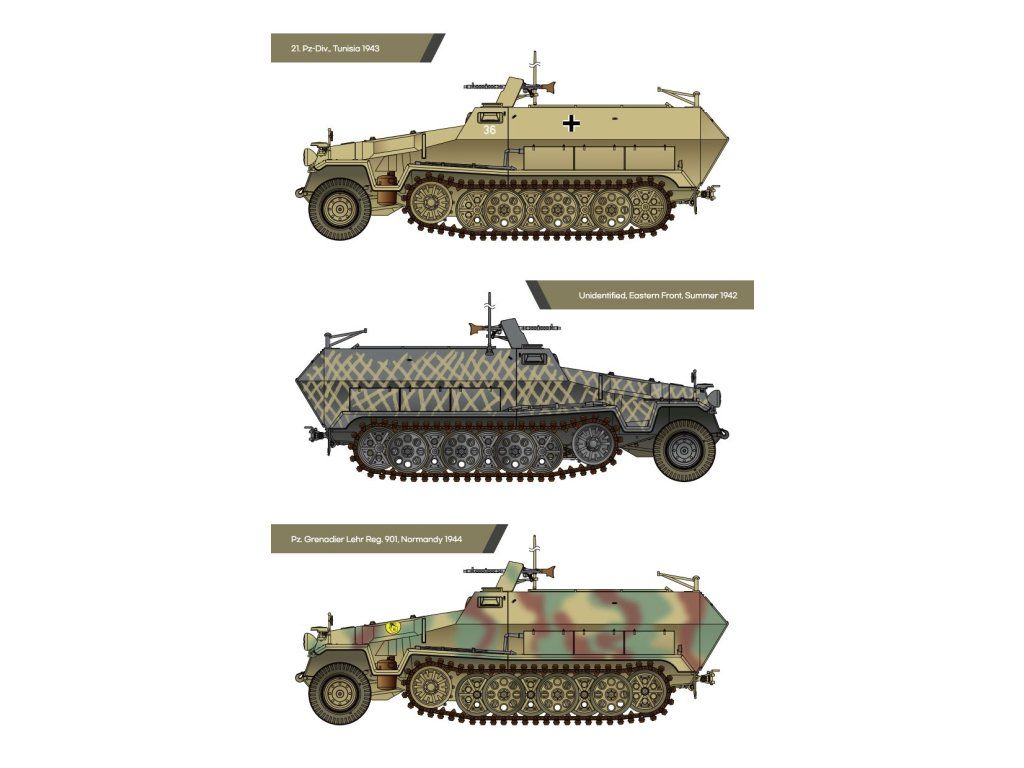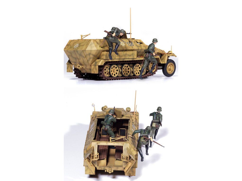 Stavebnice plastikového modelu německého polo-pásového obrněného vozidla z druhé světové války.