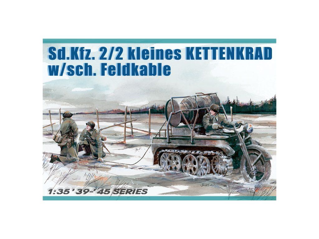 Stavebnice plastikového modelu německé vojenské polo-pásové motorky ve službách Wermachtu během druhé světové války. Verze motorky obsahuje také roli kabelu určeného ke komunikaci.