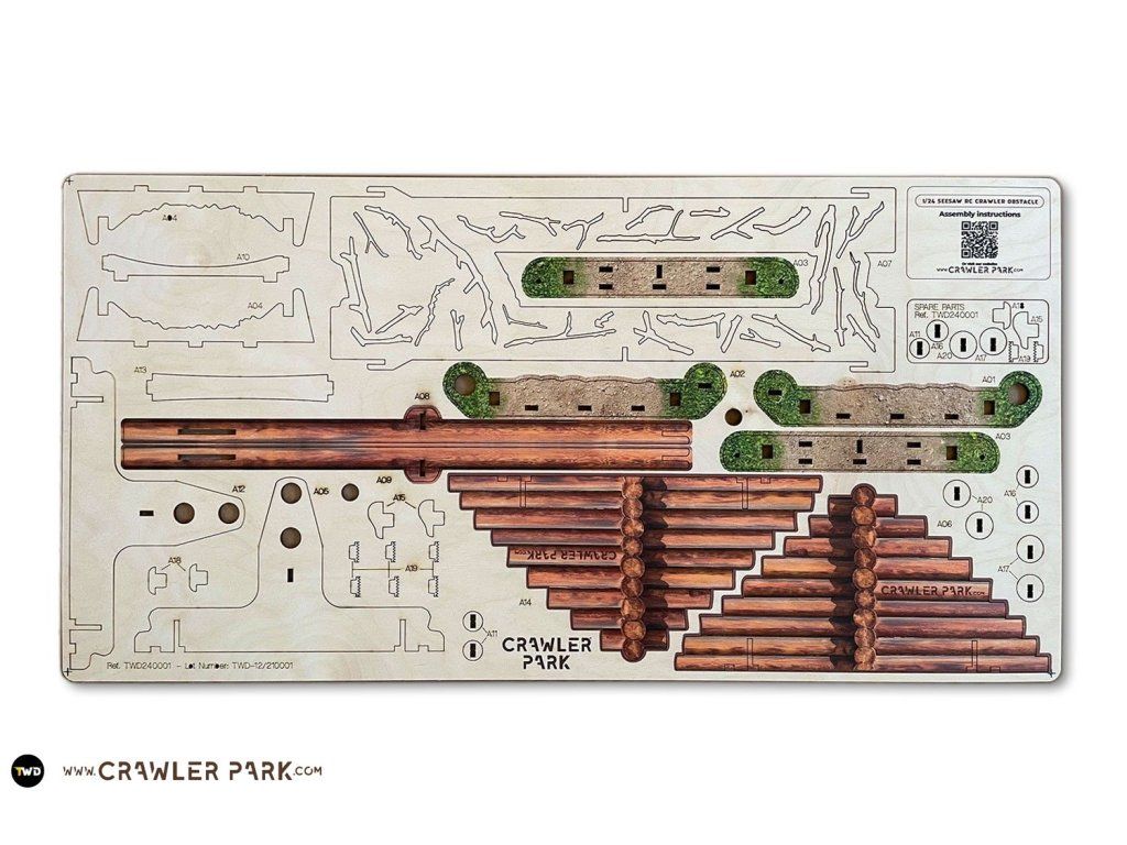 Stavebnice překážky určená pro modely expedičních a crawler aut na dálkové ovládání. Je vyrobena 100% z laserem vyřezávaných dřevěných dílů, které vyndáte z plátu pouze mírným zatlačením. Ke stavbě překážky není nutné lepidlo a všechny díly do sebe snadno zapadají. Návod na stavbu je vyobrazen na plátě prostřednictvím QR kódu, který jen jednoduše před zahájením stavby naskenujete.