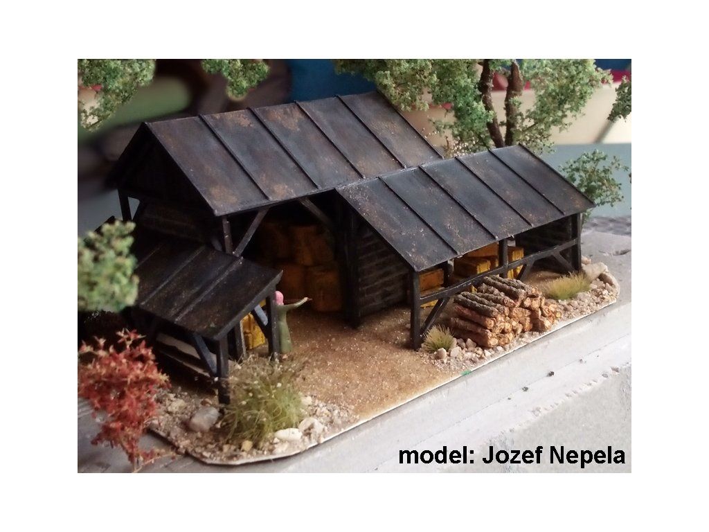 Vytvořeno volně podle předlohy běžně se vyskytující na venkově. Modulární 3-dílná sestava. Každá část stavby může být umístěna v dioramu samostatně nebo ve vzájemné kombinaci. Na požádání lze provést drobné změny pro váš originální výsledek.