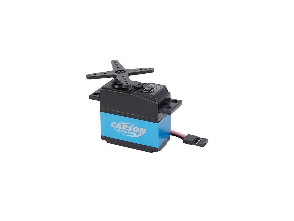 Univerzálne analógové servo štandardnej veľkosti, vhodné pre ovládanie riadenia bežných RC modelov cestných áut v mierke 1/10, alebo kormidiel RC lodí a podobne.