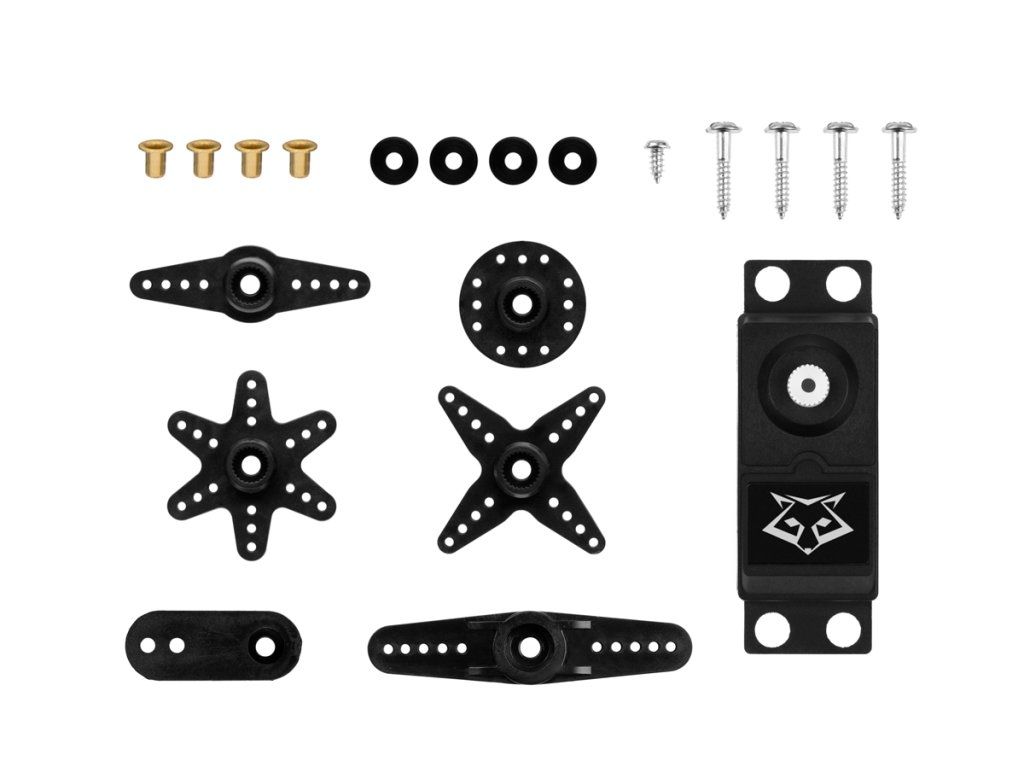 Standardní analogové servo s plastovými převody a kuličkovými ložisky pro všeobecné použití.