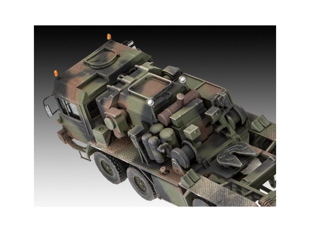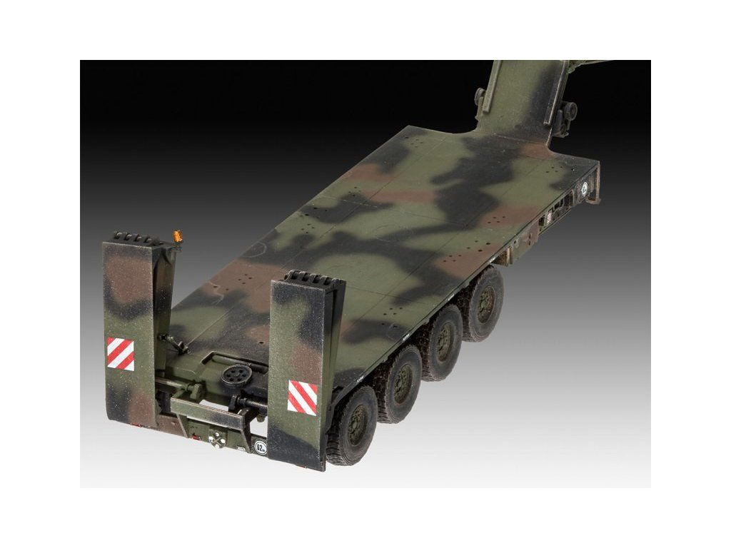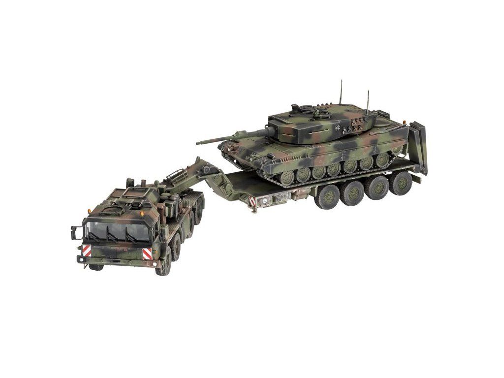 Plastová stavebnica modelu nemeckého 8x8 ťažkého vojenského ťahača s podvalníkom a nemeckého tanku zo súčasnosti.