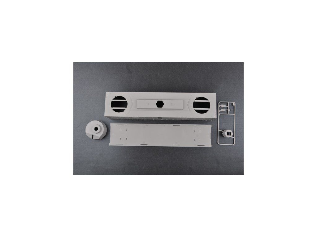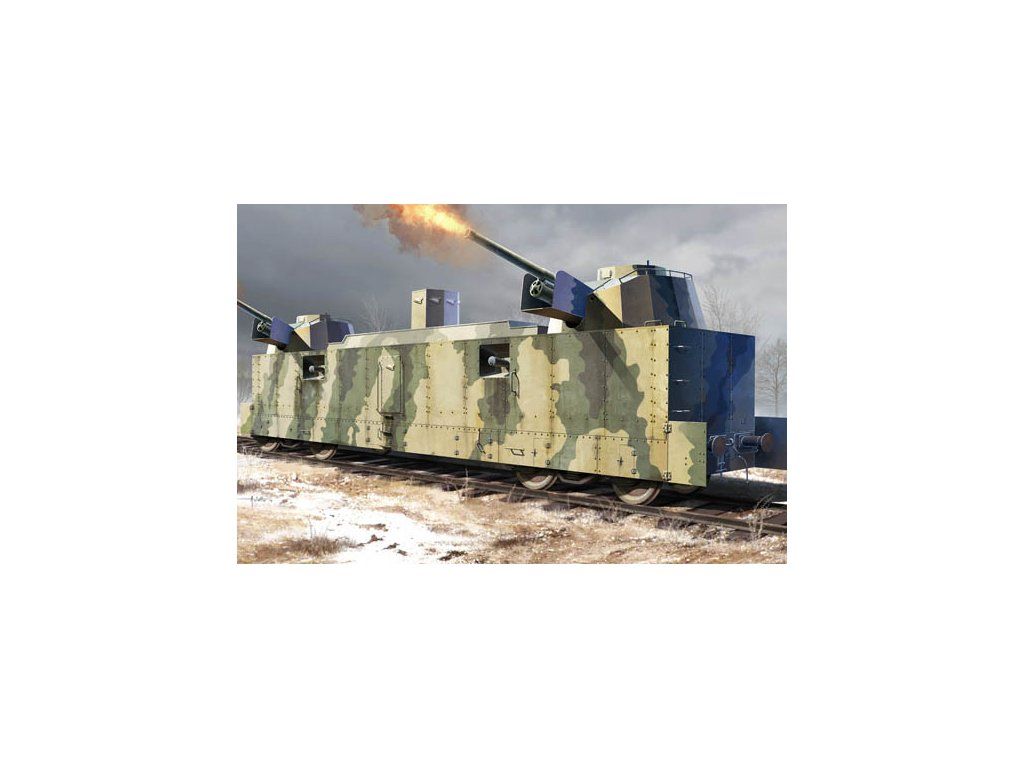 Stavebnica plastového modelu sovietskej železničnej delostreleckej batérie z obdobia 2. svetovej vojny.