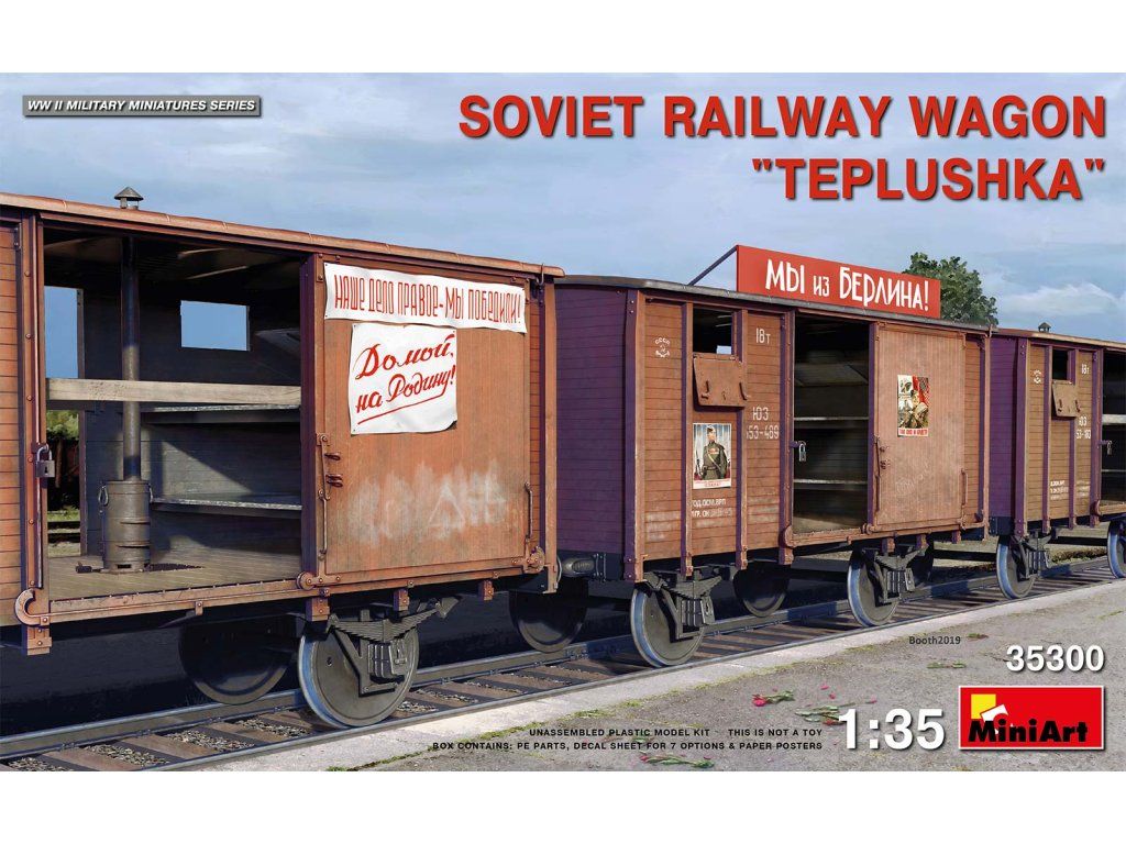 Stavebnice plastikového modelu sovětského vyhřívaného železničního vagónu používaného pro přepravu vojáků, ale i vězňů do gulagů.