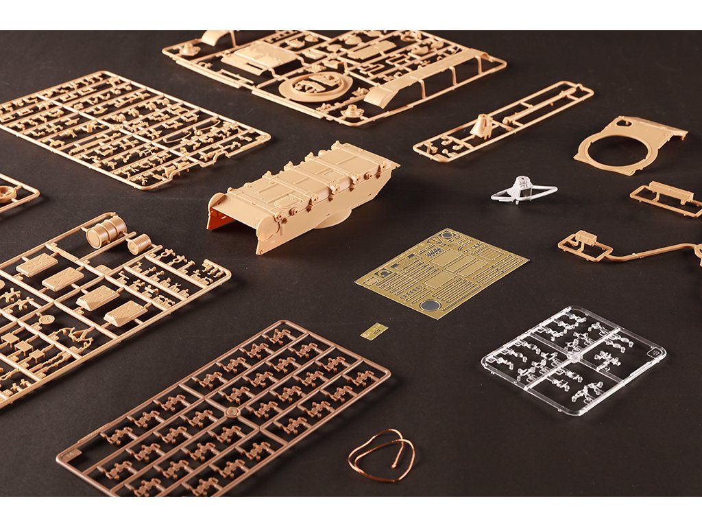 Stavebnice plastikového modelu sovětského tanku z období Studené války.