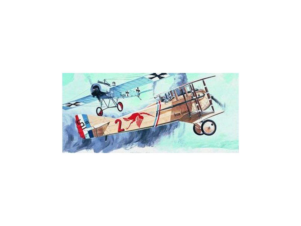 Stavebnice plastového modelu francouzského stíhacího letadla z období 1. světové války.