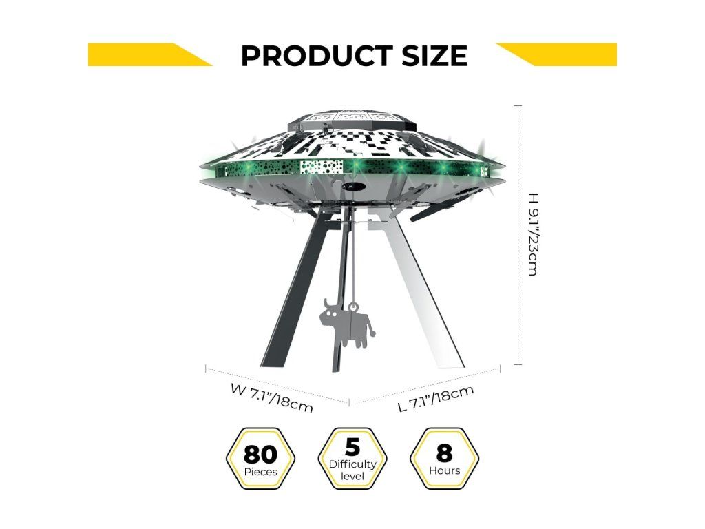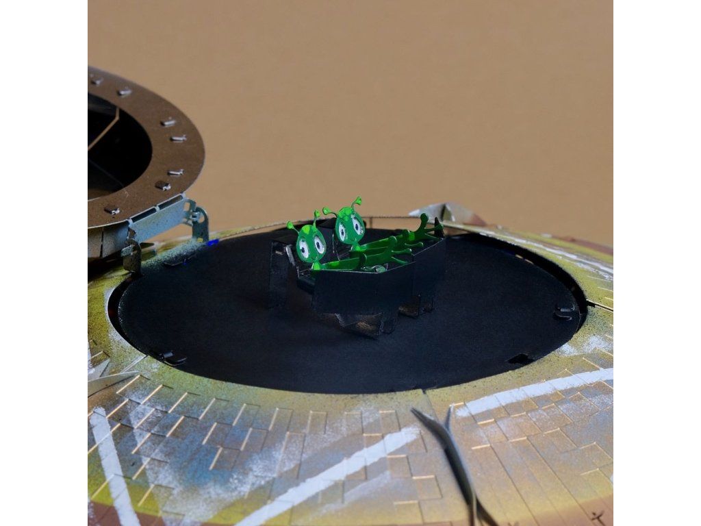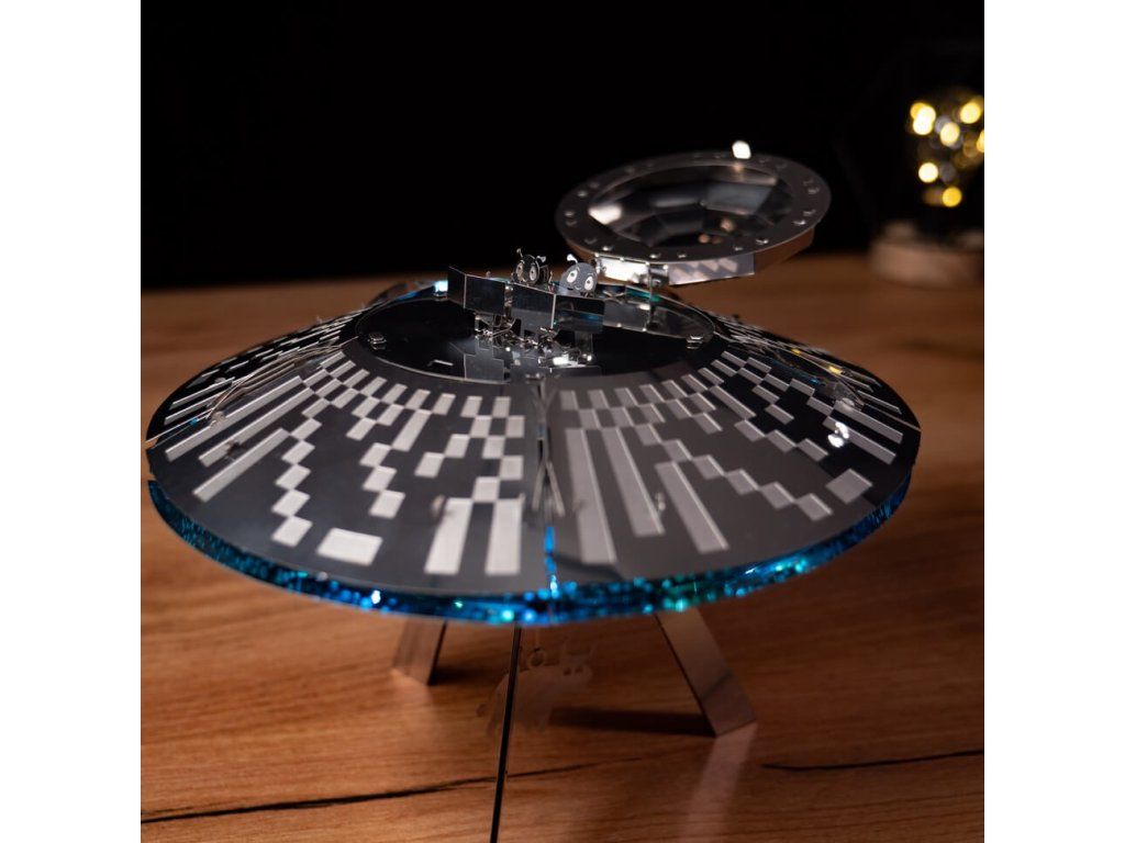 Stavebnice modelu z kovu. Vyrobeno z kvalitního leštěného ocelového plechu laserovým vypalováním a přesným obráběním. Vhodné pro mírně pokročilé a starší děti. Stavebnice obsahuje vyštipovací kleště, pilník, rukavice, čistící hadřík a sběratelské předměty jako odznak a nálepky.