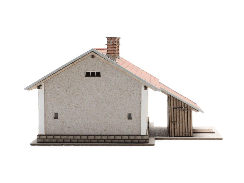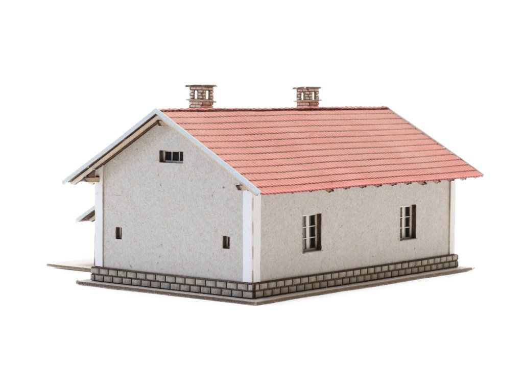 Stavebnice budovy strážného dvojdomu vhodného do diorámy nebo vláčkové krajinky.