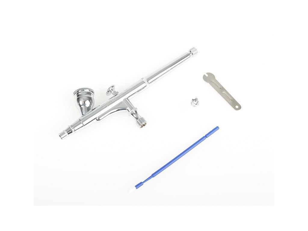 Kvalitní dvojčinná stříkací pistole určená pro malé plochy a detaily vhodná pro začátečníky ale i pokročilé modeláře. Trychtýř o objemu 2ml. Ideálně se hodí pro modelářské práce, ilustrace, kosmetické úpravy nebo zdobení nehtů. Sada obsahuje adaptér, který umožňuje přestavbu pistole na jednočinnou!