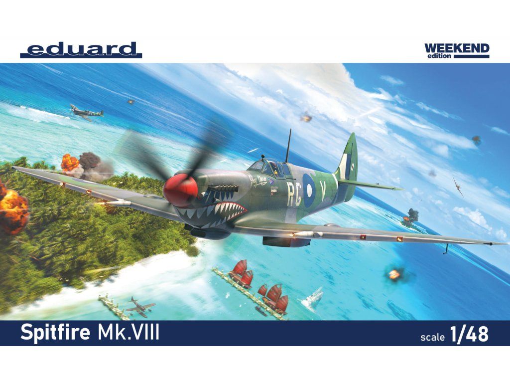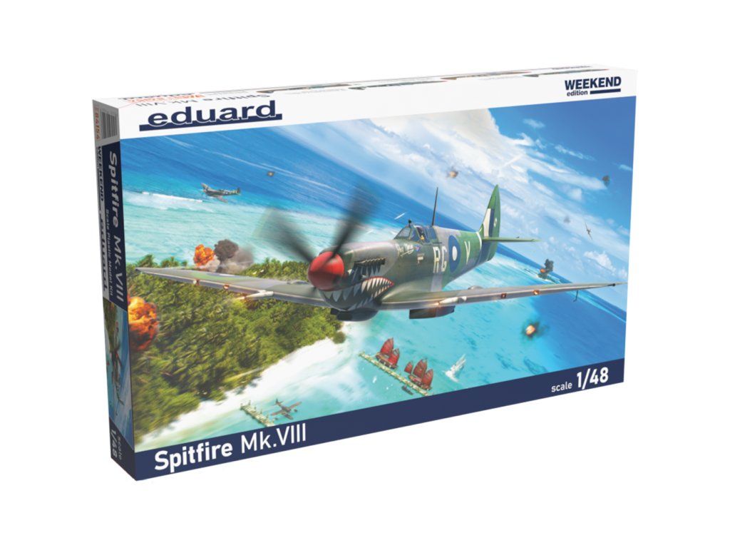 Stavebnice plastikového modelu britského stíhacího letadla z druhé světové války.Stavebnice obsahuje Spitfiry bojující nad italskou Barmou a stroje v řadách australského letectva bojujících nad Novou Guineou.