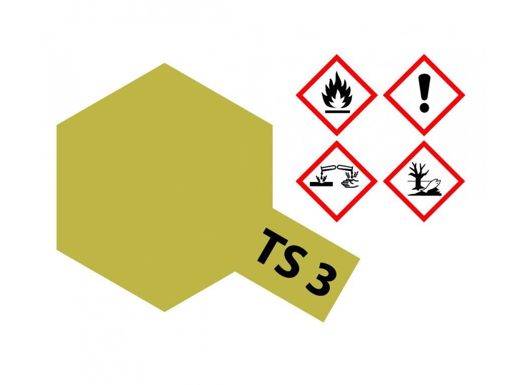 Tamiya TS jsou syntetické lacquer barvy ve spreji. Vytvrzují v krátké době a jsou užitečné pro velké plochy. Barvy nereagují s akrylovými nebo emailovými barvami či produkty na weathering. Každá plechovka obsahuje dostatek barvy pro úplné pokrytí 2 nebo 3 karoserií modelů aut v měřítku 1/24.