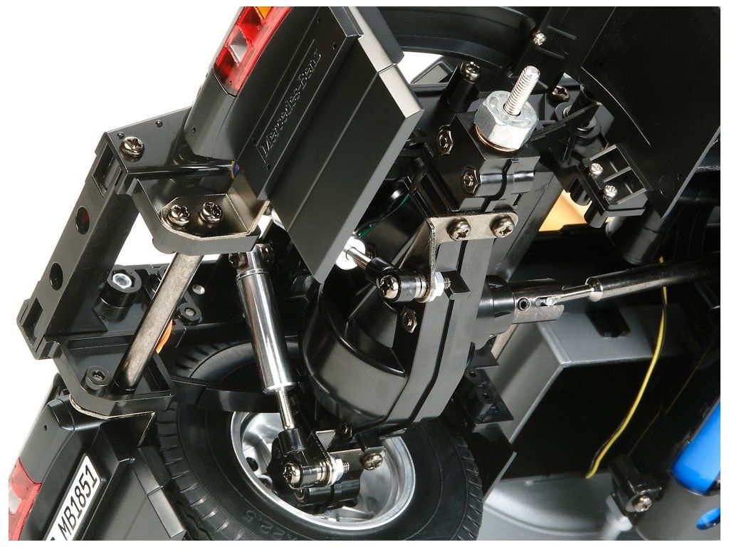 Šasi Tamiya v této stavebnici se vyznačuje vysokou modelovostí konstrukce. Pohon zadní nápravy je zajištěn přes 3rychlostní převodovku kardanovými hřídeli a diferenciály. Jednu ze tří rychlostí (převodových poměrů) lze zvolit ručně pomocí mechanických zarážek (nebo dálkově přes RC vysílač a servo řazení). Tento model má velice atraktivní vzhled, výborný výkon a jízdní vlastnosti. Model je již v základním provedení schopen utáhnout náklad 15 – 20 kg!