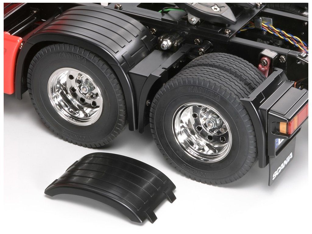 Šasi Tamiya v této stavebnici se vyznačuje vysokou modelovostí konstrukce. Pohon obou zadních náprav je zajištěn přes 3rychlostní převodovku kardanovými hřídeli a diferenciály. Jednu ze tří rychlostí (převodových poměrů) lze zvolit ručně pomocí mechanických zarážek (nebo dálkově přes RC vysílač a servo řazení). Tento model má velice atraktivní vzhled, výborný výkon a jízdní vlastnosti. Model je již v základním provedení schopen utáhnout náklad 15 – 20 kg!