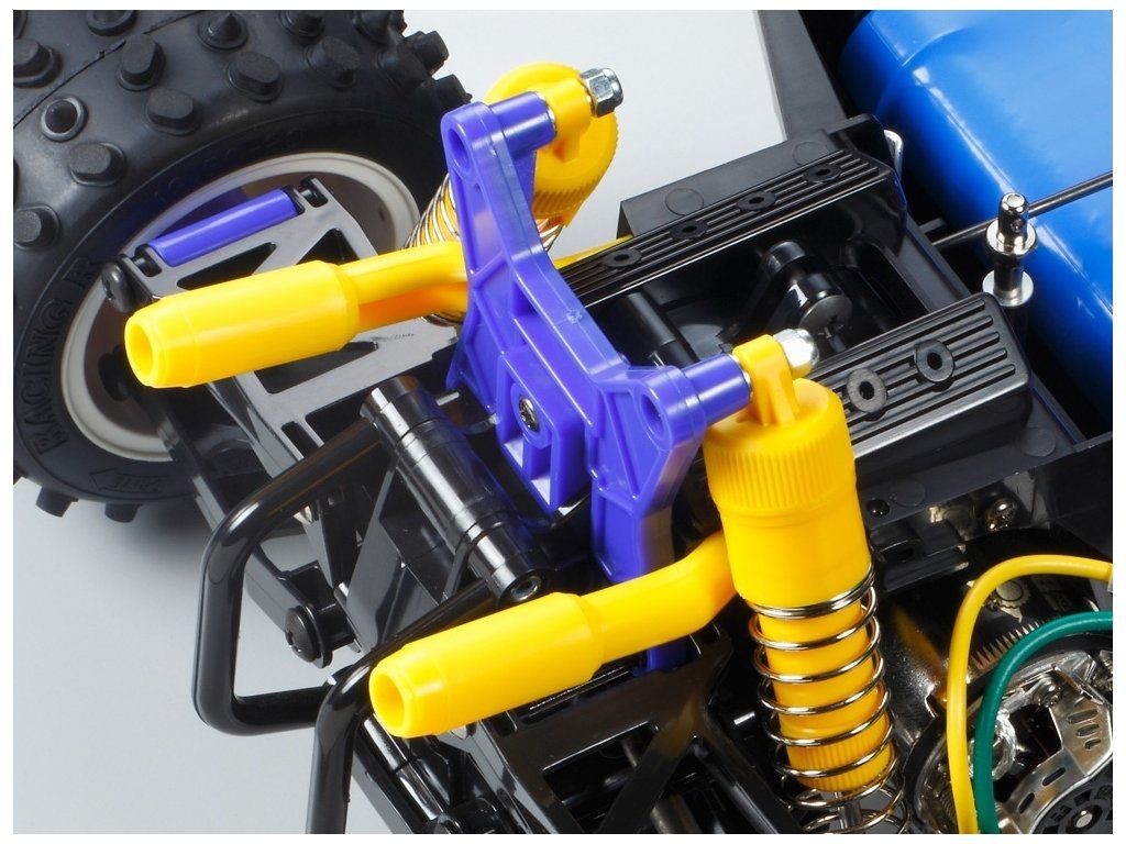 Nutno dokoupit: 2-kanálový vysílač, servo řízení, 7,2-7,4V baterii s kompatibilní nabíječkou, barvy ve spreji Tamiya PS.