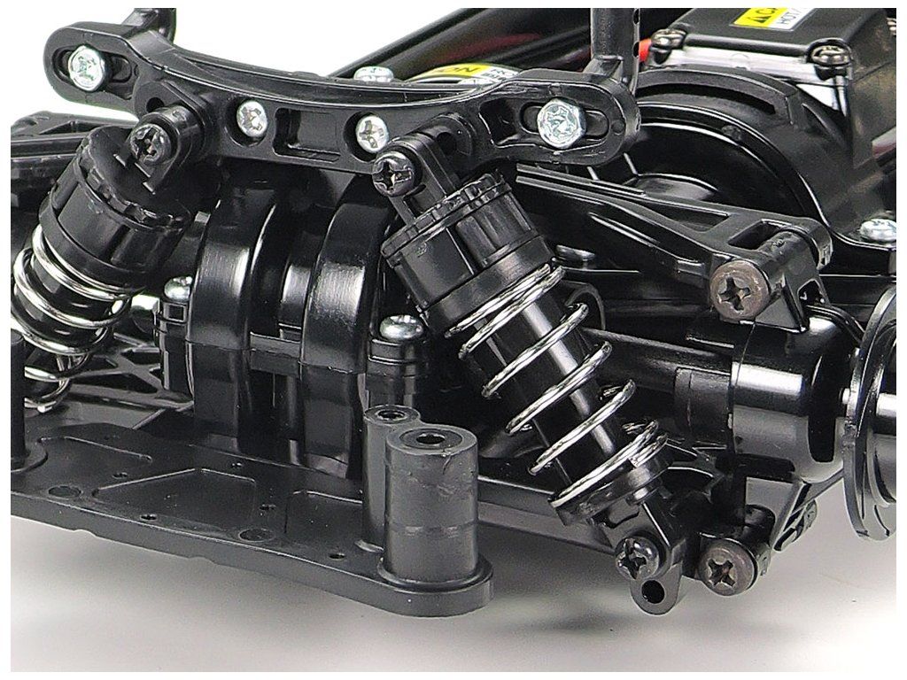 Šasi Tamiya TT-02. Pohon 4x4 je zajištěn středovým kardanem spojujícím diferenciály přední a zadní nápravy. Výborná stabilita je zajištěna umístěním akumulátoru v podélné ose vedle středového kardanu. Motor je umístěn před zadní nápravou, což ještě více zlepšuje jízdní vlastnosti.
