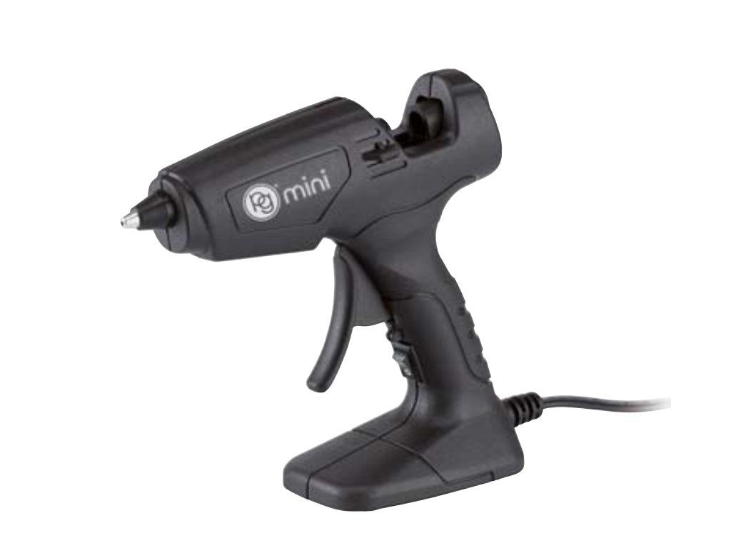 Tavná pistole na lepící tyčinky. Tryska má tepelnou ochranu a zabraňuje nechtěným únikům lepidla. Vyrobená z plastu, odolná vůči nárazům. S tlačítkem ON/OFF a samonosným stojanem. Pro lepení papíru, plastů, dřeva, keramiky, textilií a jiných materiálů.