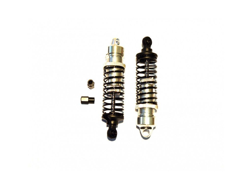 Kvalitné olejové tlmiče s hliníkovým telom a hlavou. Tuhosť pružiny je možné nastaviť nastovovacou maticou. Vhodné pre RC modely cestných a cross-road áut.