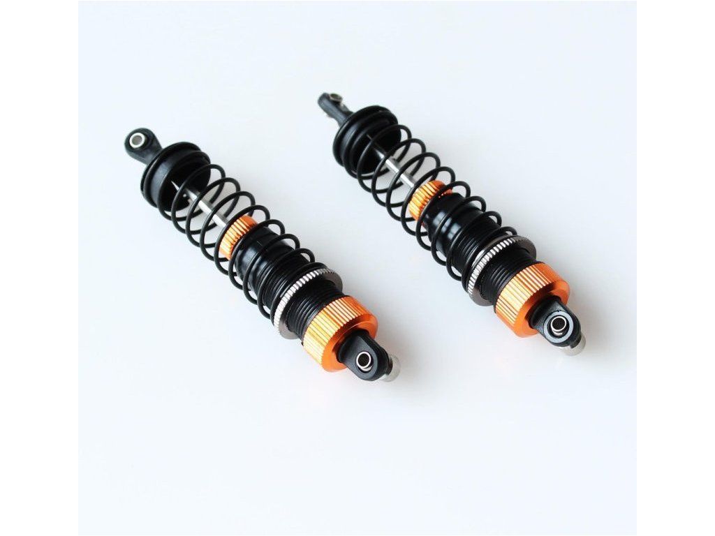 Sada hliníkových tlmičov pre RC model expedičného auta na podvozku DF-4. Tuhosť je plynule nastaviteľná maticou.