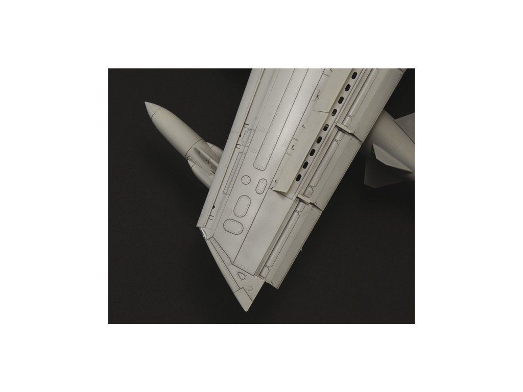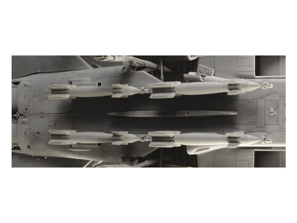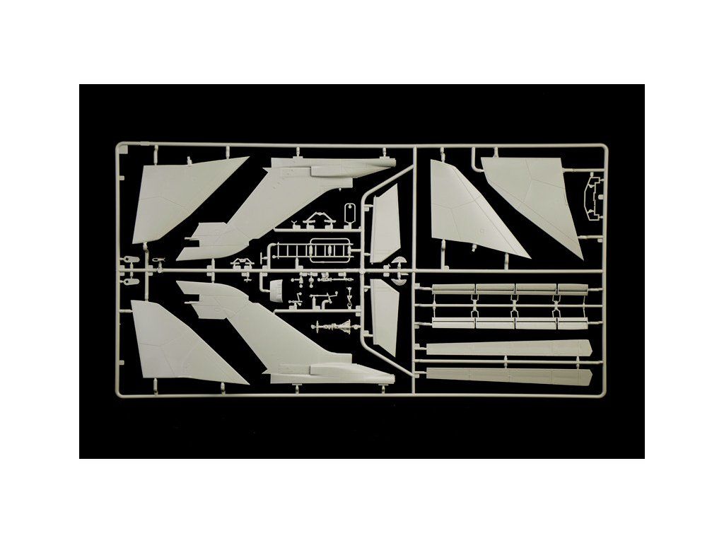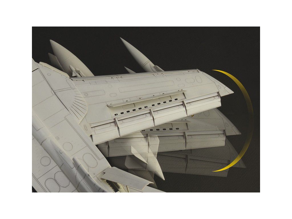 Stavebnice plastikového modelu moderního stíhacího a bombardovacího letadla s měnitelnou geometrií křídel evropské výroby.Stavebnice obsahuje kovové fotoleptané díly a pryžové pneumatiky.