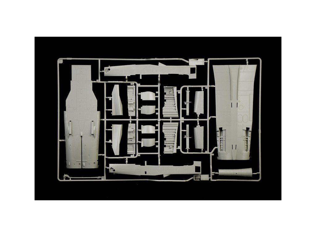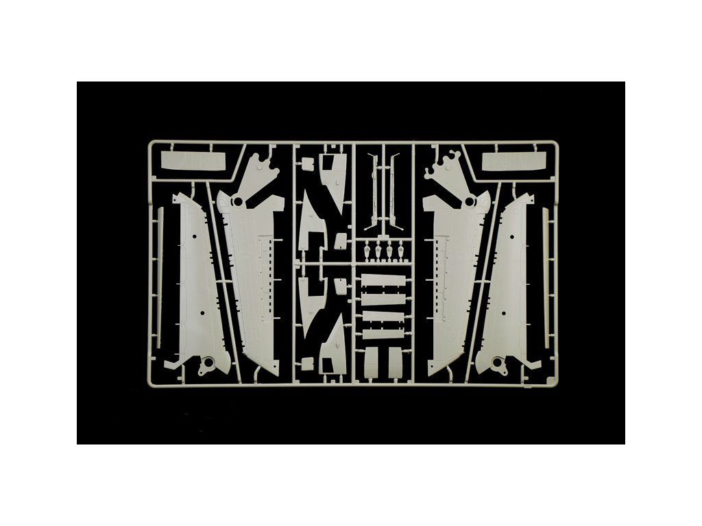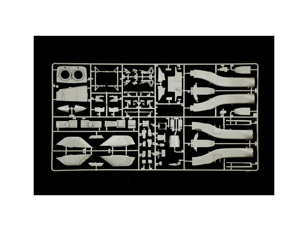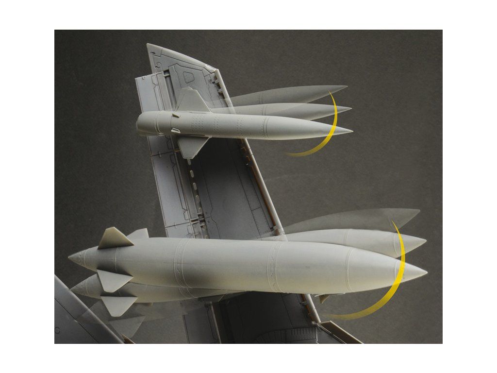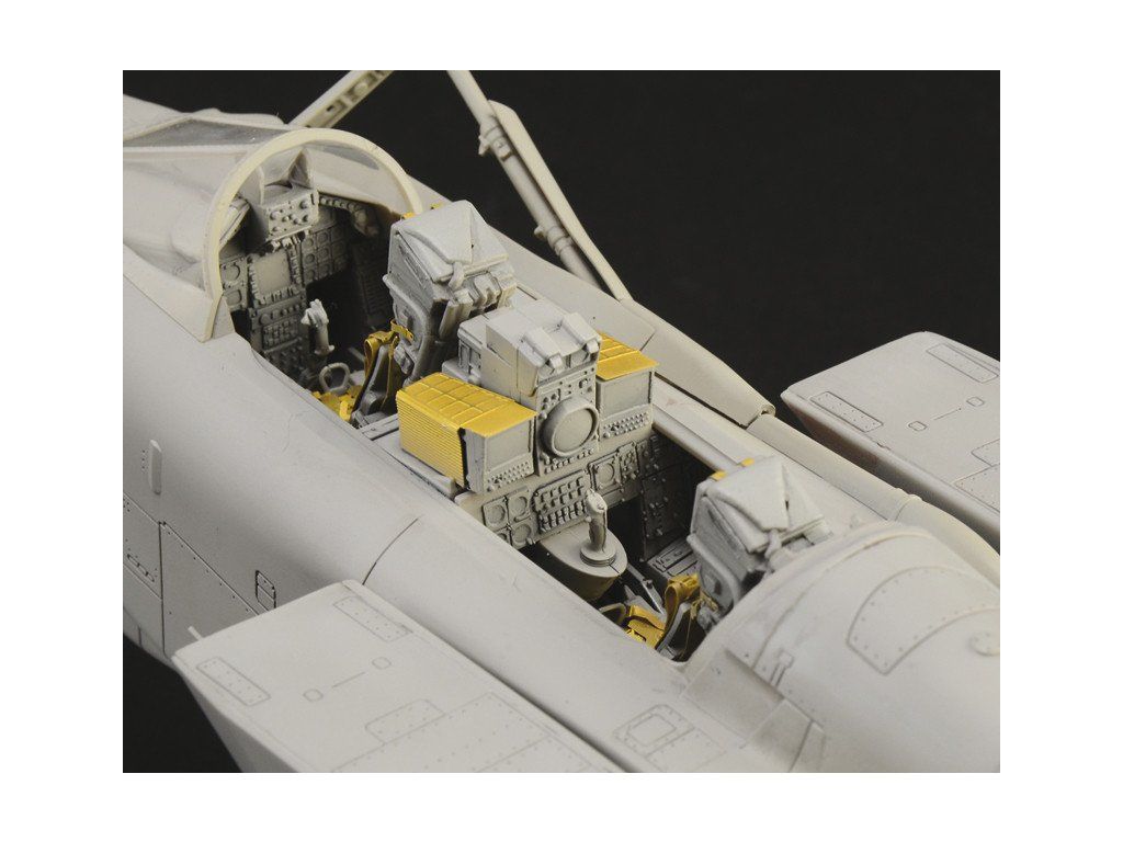 Stavebnice plastikového modelu moderního stíhacího a bombardovacího letadla s měnitelnou geometrií křídel evropské výroby.Stavebnice obsahuje kovové fotoleptané díly a pryžové pneumatiky.