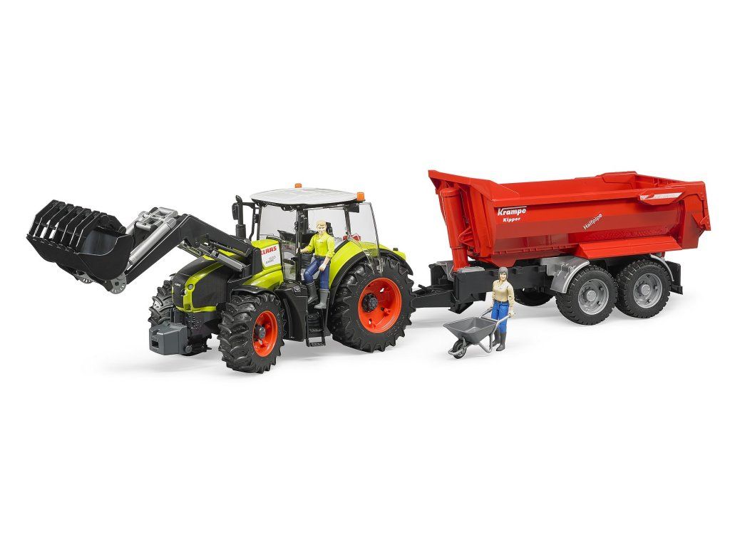 Kvalitní plastový model traktoru Claas Axion s předním nakladačem vhodný pro hraní uvnitř i venku. Zhotoven z odolného plastu.