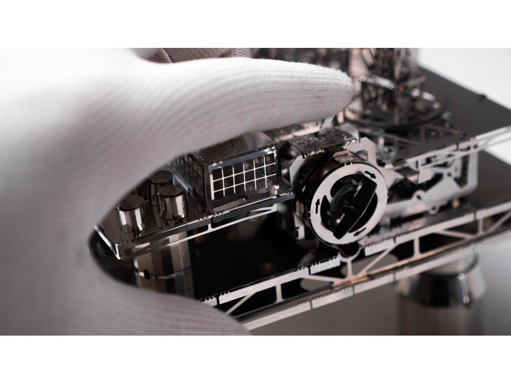 Stavebnice modelu z kovu. Vyrobeno z kvalitního leštěného ocelového plechu laserovým vypalováním a přesným obráběním. Vhodné pro mírně pokročilé a starší děti.