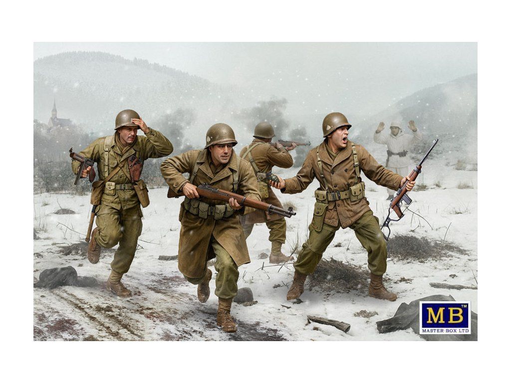 Stavebnice plastikového modelu sady figurek amerických vojáků ze 101. výsadkové divize z Obléhání Bastogne v roce 1944.