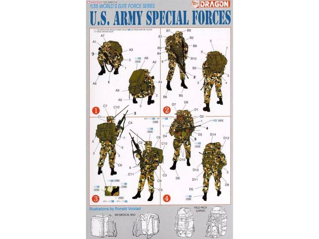 Stavebnice plastového modelu sady figurek moderních amerických vojáků speciálních jednotek „zelených baretů“.