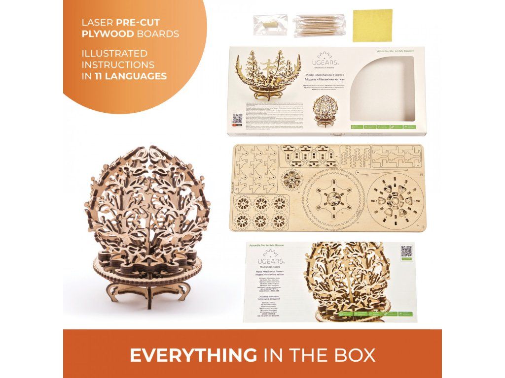 Dřevěné stavebnice mechanických modelů UGEARS jsou určeny pro děti i dospělé. Všechny díly jsou precizně vyřezány přesnou laserovou technologií z kvalitní překližky. Přesnost dílů zaručuje pohodlné sestavení i složitějších typů modelů. Skoro všechny modely UGEARS jsou nějakým způsobem funkční, ať už ve formě pohyblivých částí, nebo díky pryžovému pohonu. Modely jsou opakovaně rozebíratelné, pro sestavení se nepoužívá lepidlo.