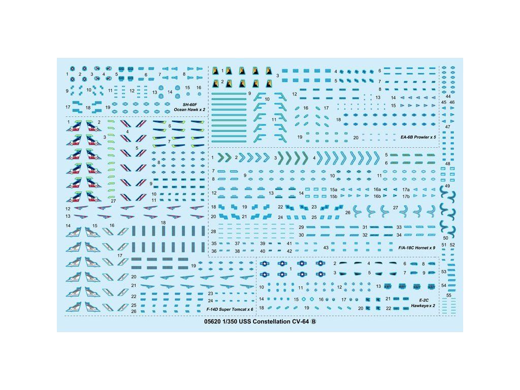 Stavebnica plastového modelu americkej lietadlovej lode z obdobia 80 rokov 20. storočia. Obsahuje aj modely lietadiel E2C, F-18F, EA-6B, SH-60.