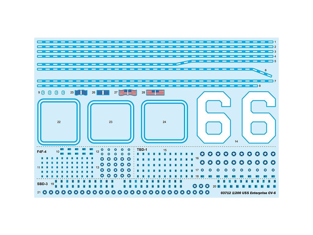 Stavebnica plastového modelu slávnej americkej lietadlovej lode z obdobia 2. svetovej vojny. „Big E“ USS Enterprise bola druhou z lietadlových lodí triedy Yorktown. Stavba sa začala v roku 1934 a oficiálne spustenie bolo v roku 1936, do služby bola uvedená v roku 1938. Enterprise šťastne unikla prekvapivému japonskému útoku na Pearl Harbor 7. decembra 1941 a bola okamžite poverená bojovou činnosťou proti Japoncom.