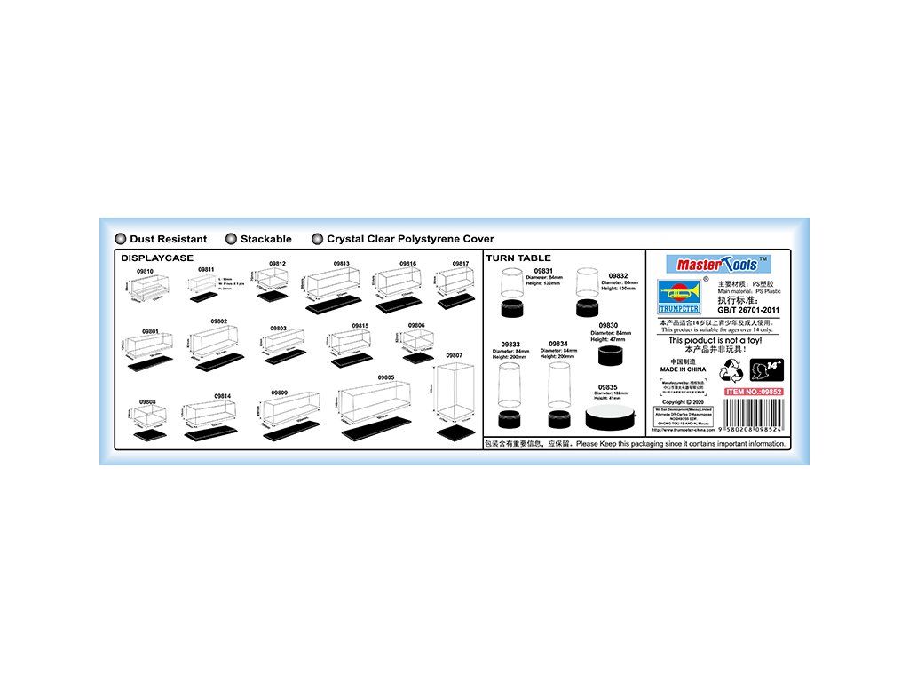 Plastová krabice pro vystavení modelu, nebo malé diorámy. Podstavec je zakryt kvalitním průhledným plastovým krytem. Pozor, není odolný proti poškrábání.