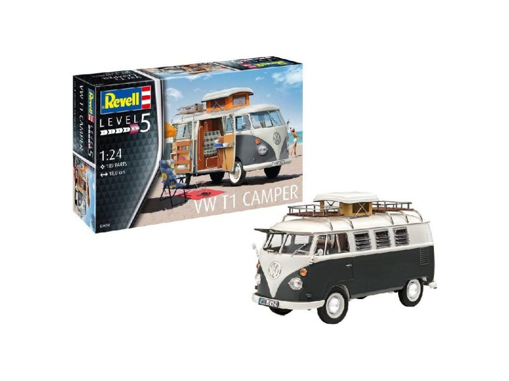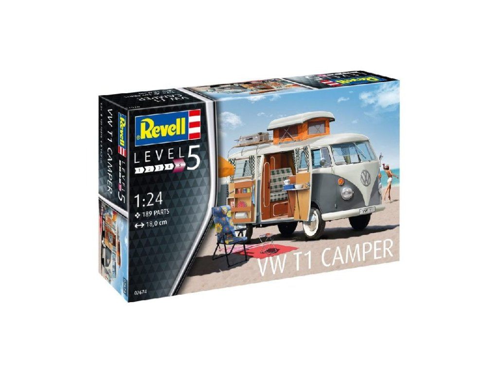 Stavebnice plastikového modelu kultovního rodinného auta v turistické verzi určené pro kempování.