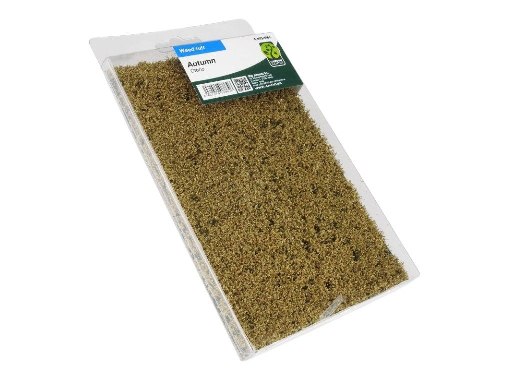 List statických trsů trávy / keřů o výšce 6 mm ideálních pro vytvoření přirozeného a nerovnoměrného vegetačního porostu v diorámu nebo vláčkové krajině. Jednotlivé trsy lze z fólie odlepit a pomocí lepidla aplikovat na požadované místo. Vhodné pro použití v měřítkách 1/35, 1/48 a 1/72.
