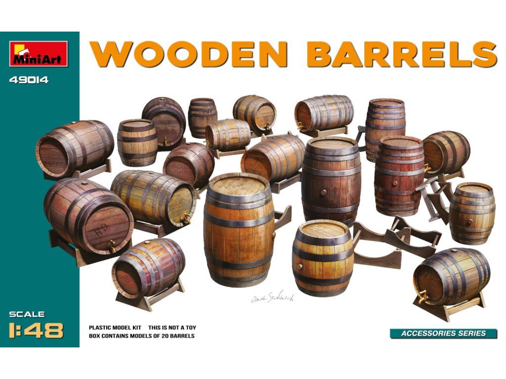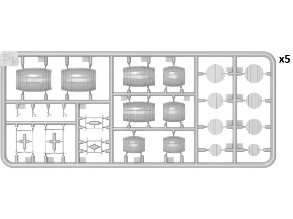 Dřevěné barely/sudy určené jako doplněk do diorámy nebo plastového modelu. Stavebnice umožňuje sestavit 20 individuálních sudů.