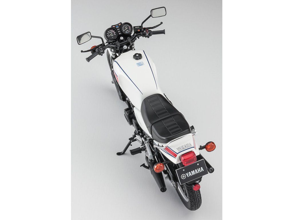 Stavebnice plastikového modelu motocyklu japonské značky Yamaha z 80. let minulého století.